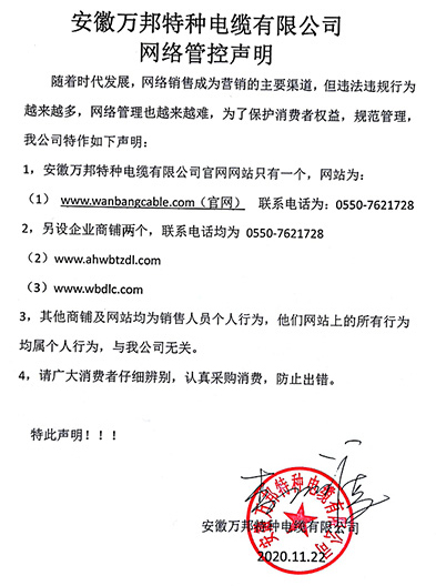 鄭重聲明:安徽萬邦特種電纜有限公司官方網站為:www_wanbangcable_com.fqlzas9l.cn,除此之外無任何子網站或合作網站,其余均為假冒偽劣。電話:0550-7621728 13485756353 地 址:安徽省天長市滁州高新技術產業開發區經四路29號